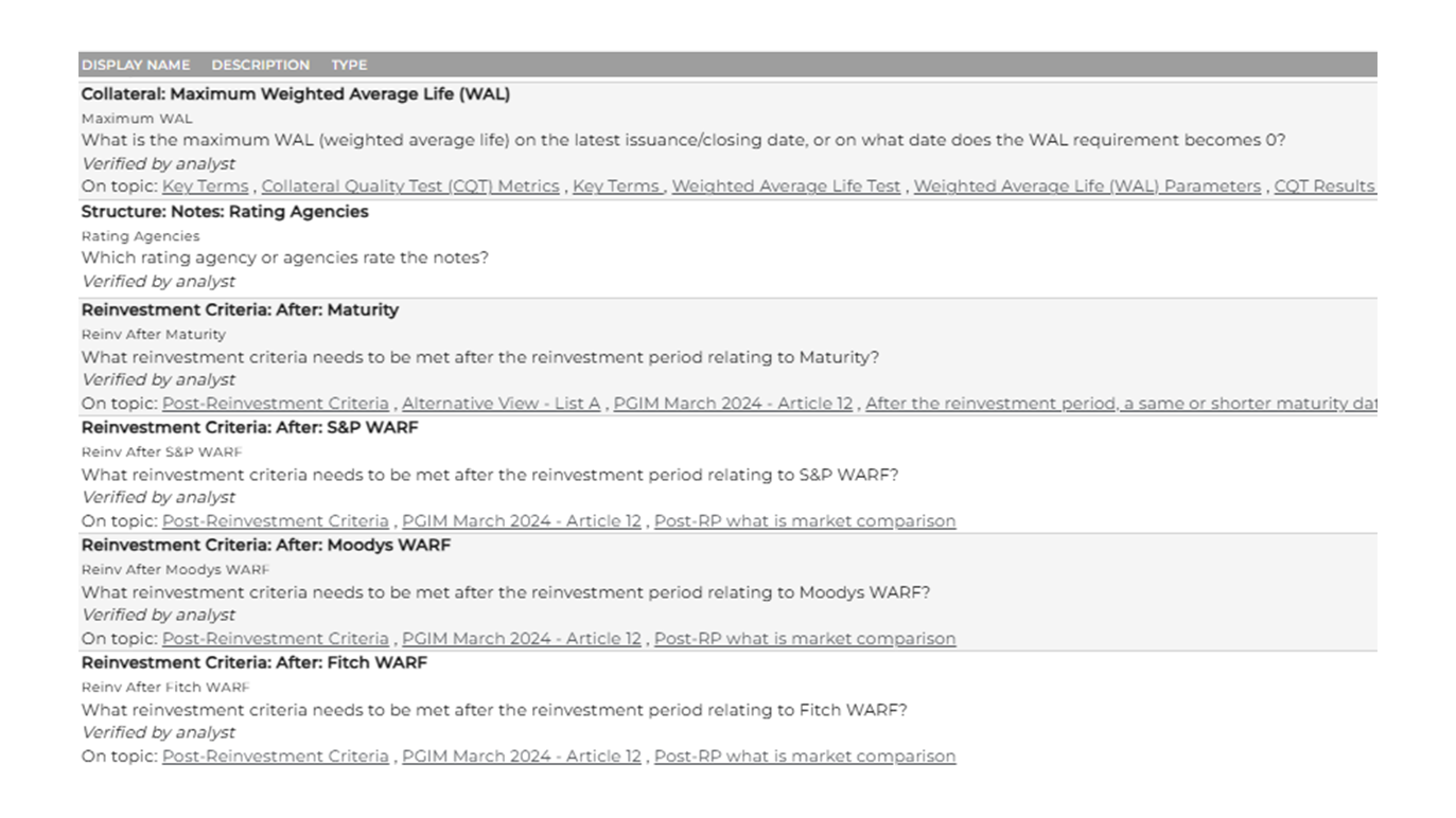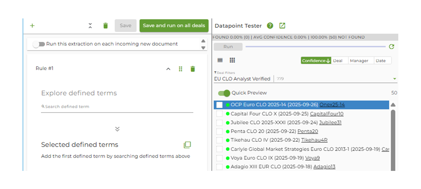 Whether you're tracking ESG industry screens, Loss Mitigation Obligations, or Incentive Fee IRR triggers, the system adapts to extract exactly what your models need. The same technology our analysts use to verify millions of data points now works on your custom requirements.